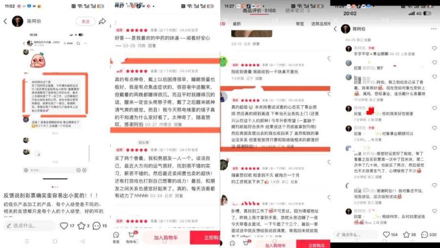 当然,他们没机会像陈阿伯一样收获暴利。陈阿伯显然深谙营销之道,小红书上的笔记,几乎全是客户反馈所购买的产品“太灵验”。其中有一位客户反馈,“太神奇了,今天发奖金了!拖了4个月了,就是发的没有预期高。年底我得多买几个提升一下奖金的数量。”并强调,“我不是托。”博主以“哈哈哈哈”戏谑回应,“你就是托。”