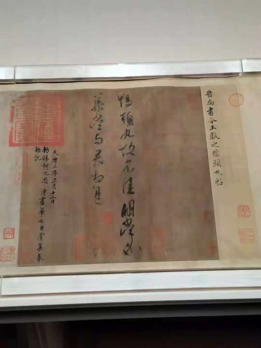 4. 书法字体转换标志:《鸭头丸帖》标志着中国书法由章草彻底向今草转变,其"破体"创新打破单字独立格局,为唐代狂草的出现奠定基础。与张芝、钟繇、王羲之并列"四贤"的王献之,借此帖展现了晋人"超脱俊逸"的时代基调上更加"纵逸奔放"的个人风格。