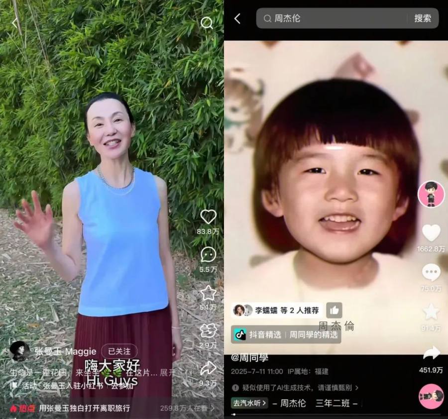 其实这一套,2025年还在玩。无论是7月入驻抖音的周杰伦,还是8月入驻小红书的张曼玉,入驻b站的陈奕迅。他们对平台来说,还是带来相当稳定的口碑、大众关注度。只是看上去,这些能够吃透所有人的老牌顶流们,不再只是唯一选项,而是一种安全牌的存在。