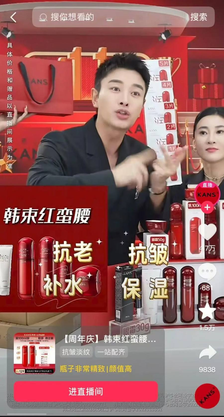 抖音就引入了更有泛影响力、更会整活的“综艺咖”们。贾乃亮、黄子韬已经变成了抖音生态中的明星ip,与他们强绑定的就是抖音的直播间生态。