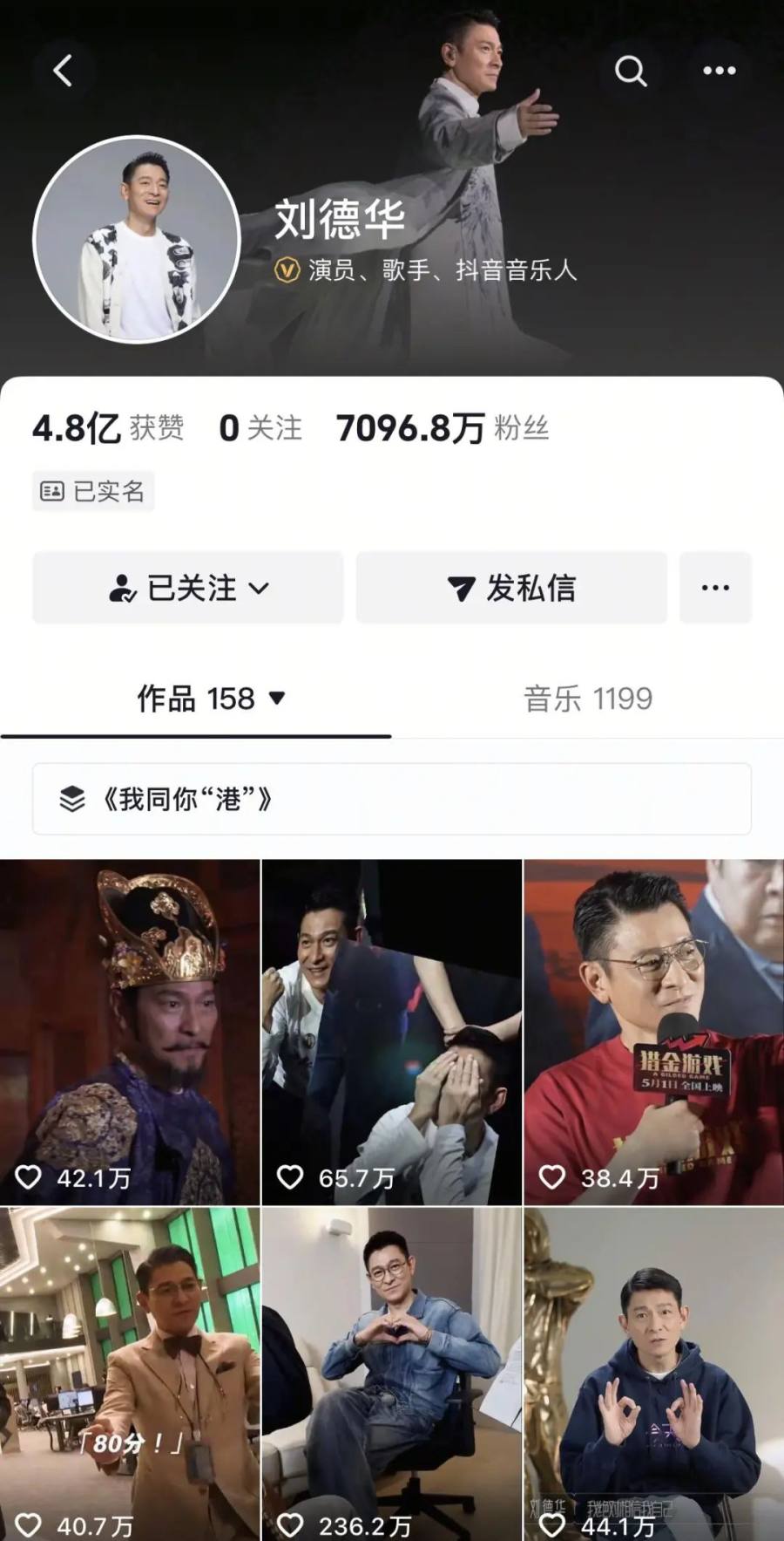 同样的2020年,大批明星入驻了抖音,Angelababy、迪丽热巴等顶流艺人几乎都是那段时间开通的抖音账号。最大的动作,无疑是2021年刘德华入驻抖音,入驻12小时粉丝量破1000万,首支视频点赞量超2000万。
