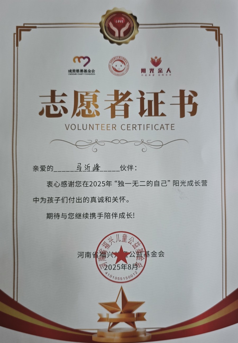 在支付宝公益爱心网友的支持下,由海南成美慈善基金会主办、河南省福兴儿童公益基金会承办的“独一无二的自己”阳光成长营于8月11日至16日在郑州市樱桃沟培训基地举办。中牟县益奉社工服务中心主任马沂峰带领4名事实无人抚养儿童参加。