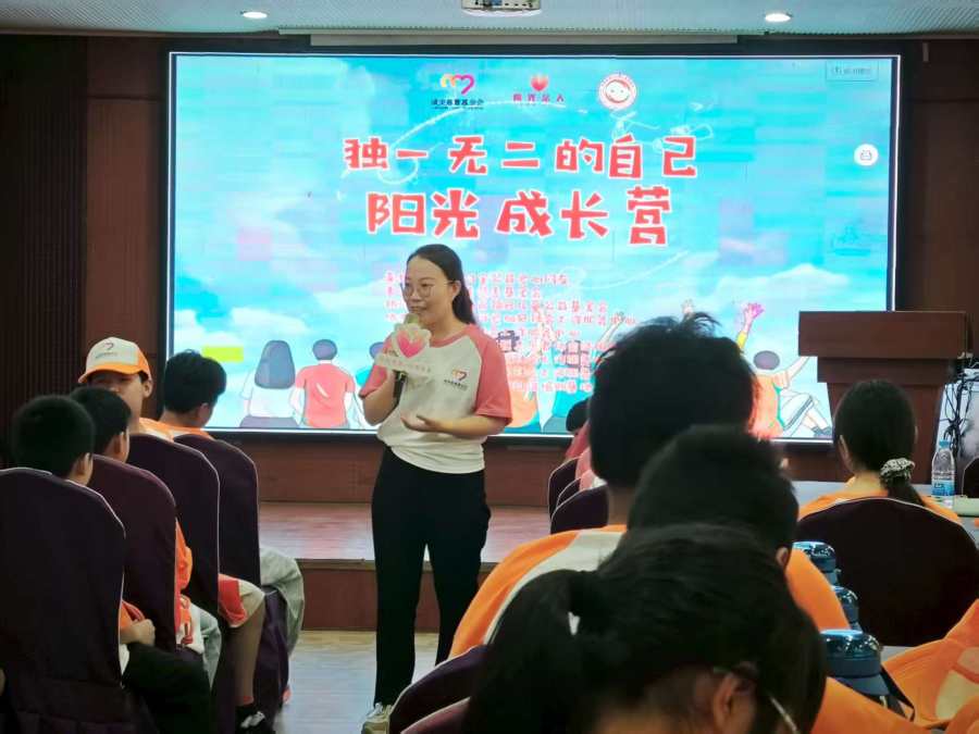 阳光亲人项目--阳光成长营活动旨在搭建一个让阳光亲人板块儿童之间密切沟通融合的平台,活动内容精心设计,融知识性、趣味性、挑战性于一体,涵盖破冰游戏、世界万花筒、情绪万花筒、团队挑战、微光行动、飞盘体验、价值拍卖会、户外拓展、才艺展示等,让孩子们从压抑、封闭的生长环境走出来,看到美好、体验美好、追求美好,做独一无二、无可替代、闪闪发亮的自己。