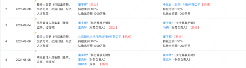企查查信息显示,与辉同行的全资股东为子三省,后者是董宇辉在2024年12月成立的公司,董宇辉为实际控股人。董宇辉通过终南远眺和本人共计持股90%,长歌有和合伙企业持股10%。