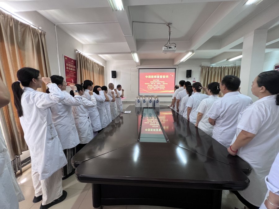 8月19 日上午,医院三楼会议室洋溢着庄重而温馨的氛围。医院领导班子与全体临床医师、技师齐聚一堂,召开医师节大会,共同庆祝属于医者的节日。副院长赵小伟代表领导班子向全体医师致以节日的问候和崇高的敬意,充分肯定大家为医院发展和辖区居民健康所做出的突出贡献,并勉励大家继续发扬优良传统,精研医术,恪守医德,勇于担当。 随后,副院长吉志宣读技能竞赛获奖名单,院领导为获奖者颁发荣誉证书及多功能听诊器、医学类工具书等节日礼品,激励全体医师以先进为榜样,不断精进医术。在领誓人的带领下,全体医师庄严宣誓:“我庄严宣誓,自觉维护医学的尊严和神圣,敬佑生命,平等仁爱……”铿锵誓言回荡会场,既是对从医初心的再一次叩问,更是对守护生命、服务人民的郑重承诺。