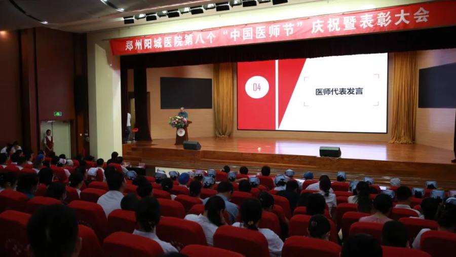 8月18日下午,郑州阳城医院在学术报告厅召开“第八个中国医师节庆祝暨表彰大会”,医院领导、临床医师及护士代表齐聚一堂。