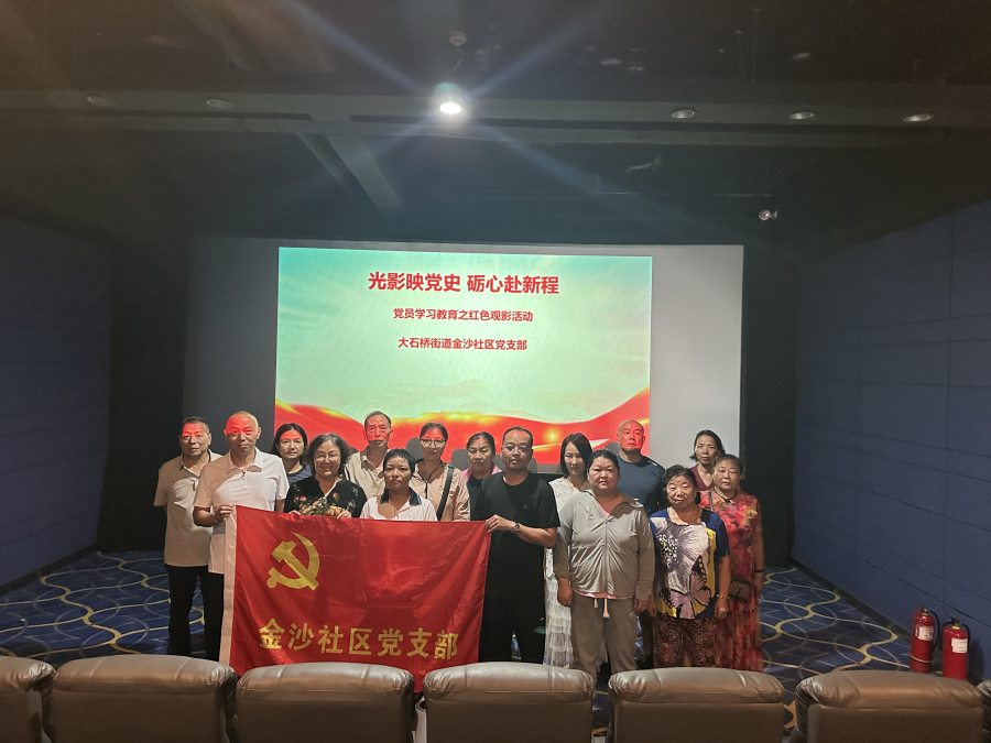 为纪念中国人民抗日战争暨世界反法西斯战争胜利80周年,进一步加强党员的思想政治教育,激发党员的爱国情怀,2025年8月19日下午,大石桥街道金沙社区党支部组织党员观看电影《南京照相馆》。