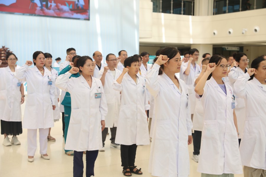 医师节不仅是对过往付出的肯定,更是对职业初心的重温与砥砺。上午10点,一场庄严的宣誓仪式将活动推向高潮。“我志愿献身人类的健康事业;自觉维护医学的尊严和神圣……”铿锵有力的誓言在耳边回响,再次点燃了在场每一位从医者内心的责任与担当,提醒他们时刻牢记从医者的崇高使命。