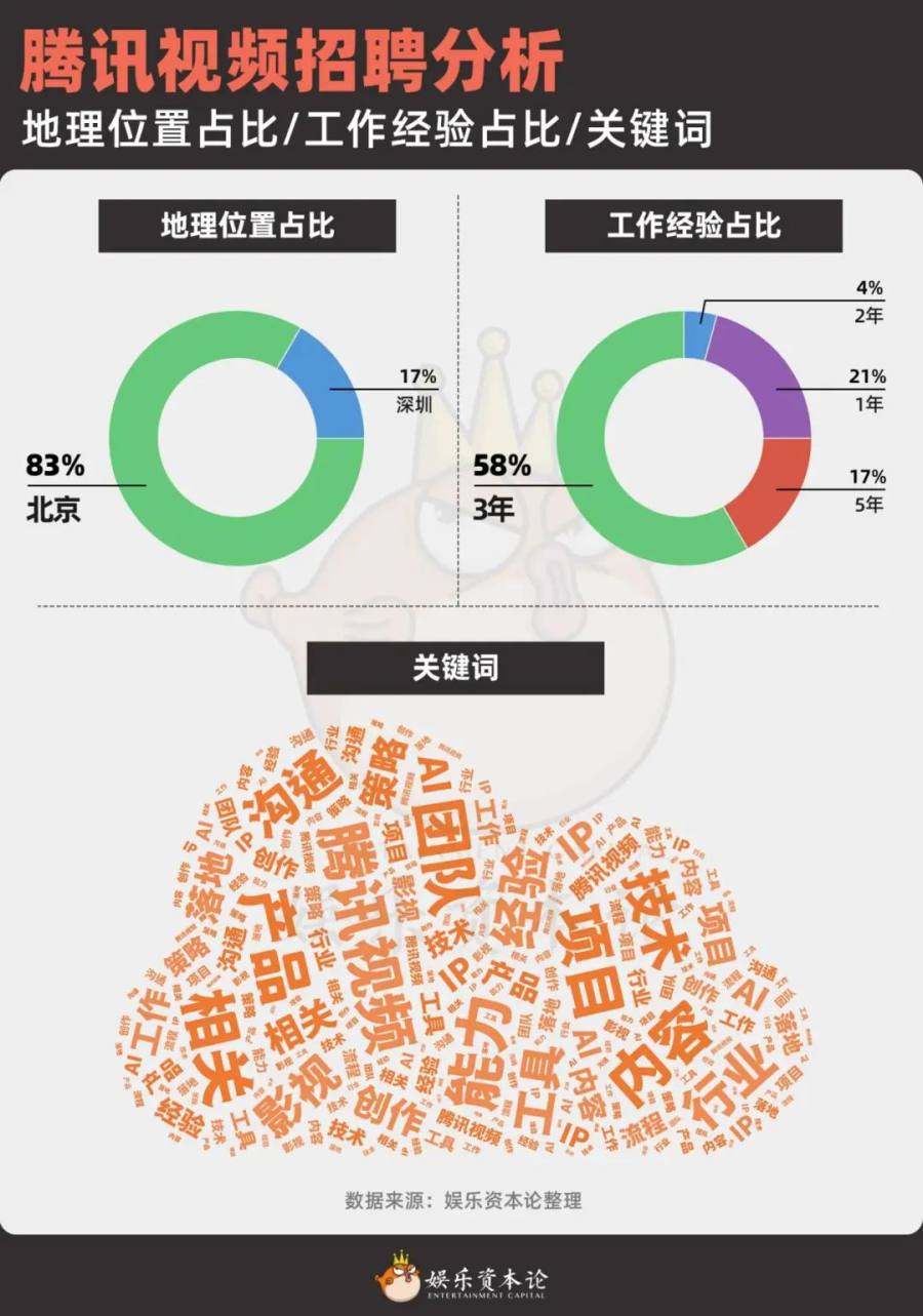【娱乐资本论·人才风向标系列报道现已推出爱奇艺、虎鲸文娱(优酷)、腾讯视频的招聘分析,如您是有意求职者或希望进一步研究相关数据,可添加小娱微信:ylzbl_kexiaofu,或在后台回复“招聘分析”,一起进群领取这些公司招聘的全岗位需求】