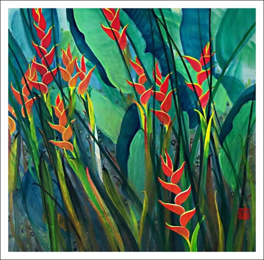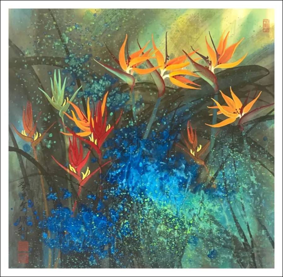 夏威夷花卉 生宣工写彩墨 68x68cm 1995年 王明科