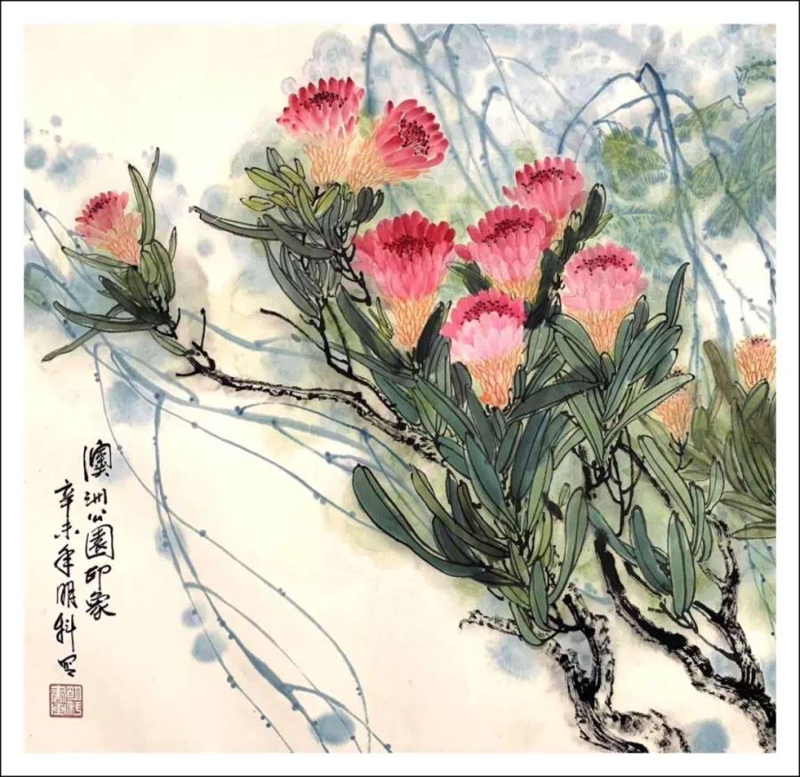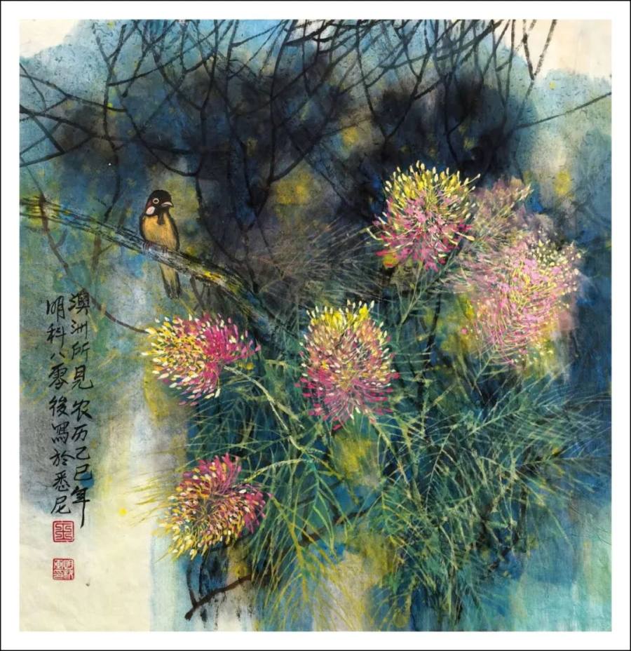 澳洲花卉 生宣彩墨 68x68cm 2025年 王明科