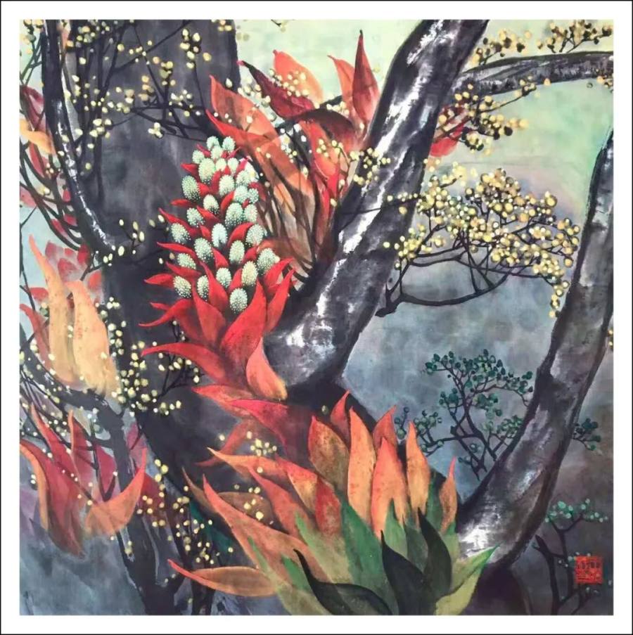 澳洲花卉 生宣工写彩墨 68x68cm 2011年 王明科