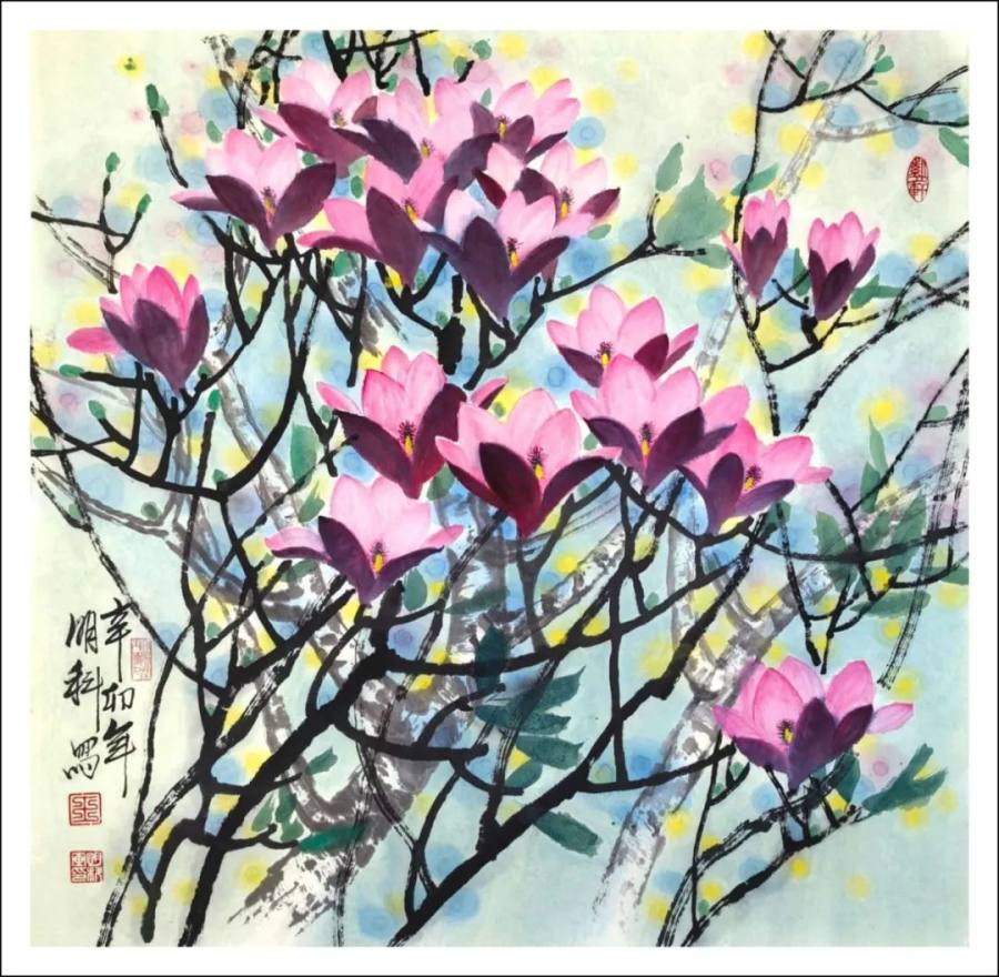 辛夷花 生宣彩墨 68x68㎝ 2011年 王明科
