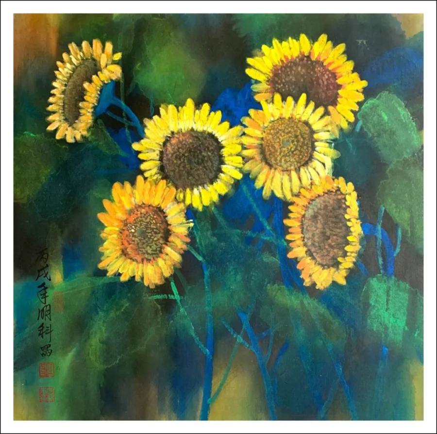 向日葵 生宣彩墨 68x68cm 2006年 王明科