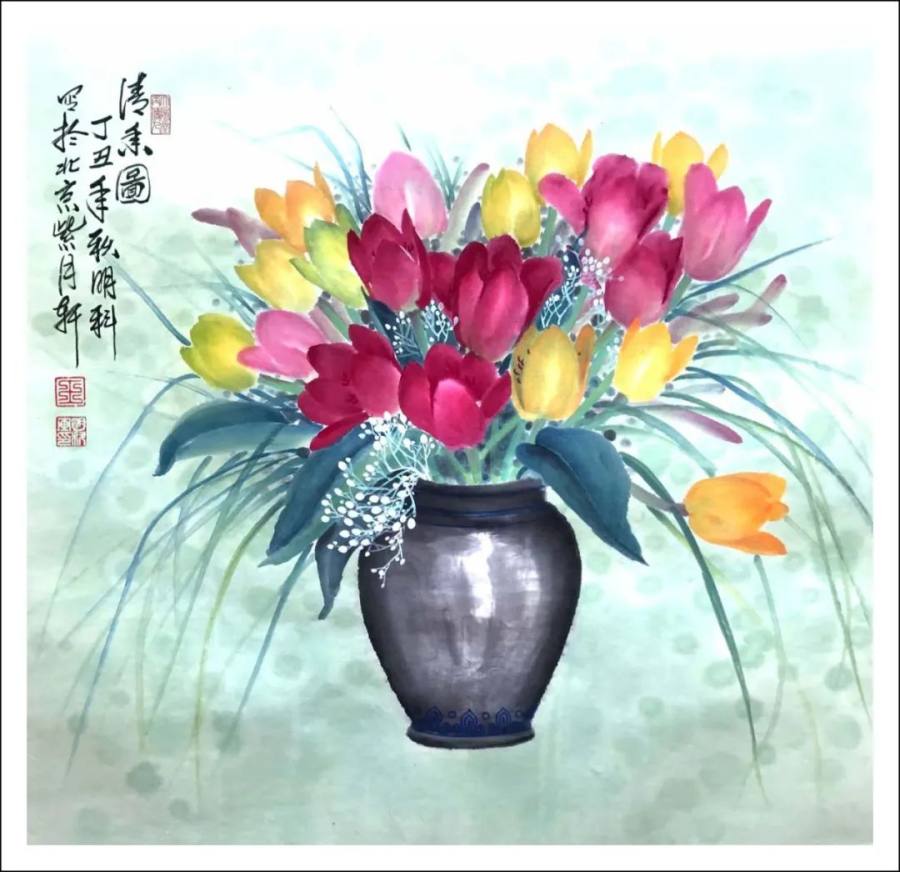 郁金香 生宣彩墨 68x68㎝ 1990年 王明科
