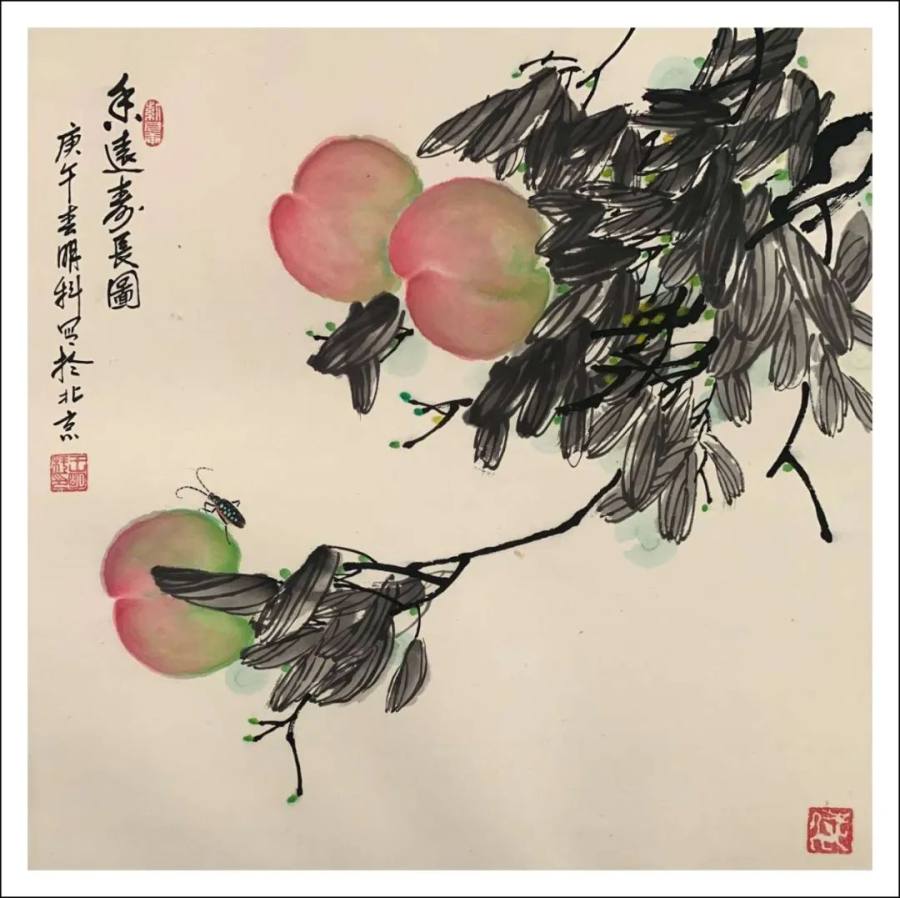 香远寿长图 生宣彩墨 68X68㎝ 1990年 王明科