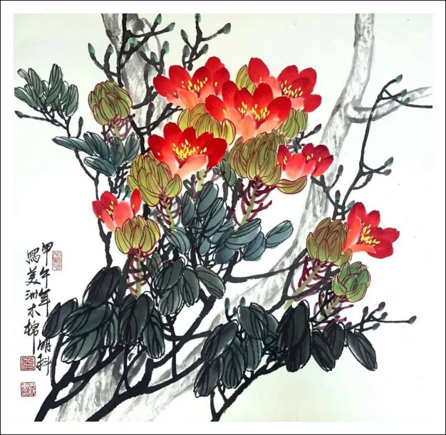 美洲木棉花 生宣彩墨 68x68㎝ 2014年 王明科