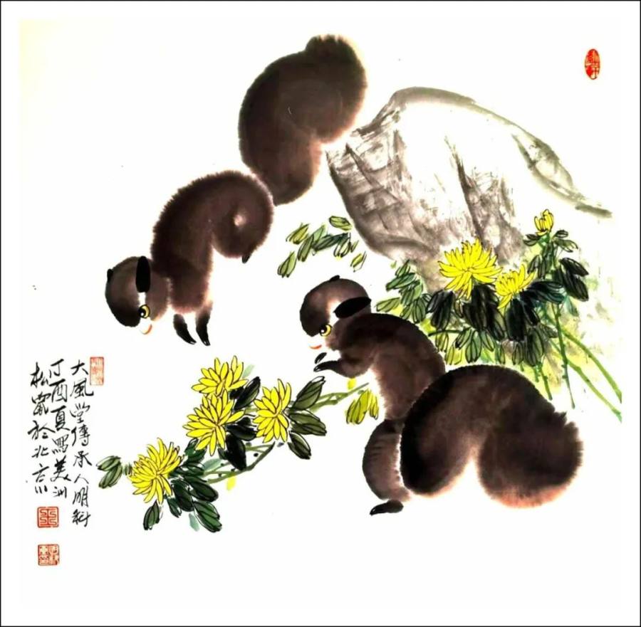 美洲松鼠 生宣彩墨 68x68㎝ 2017年 王明科