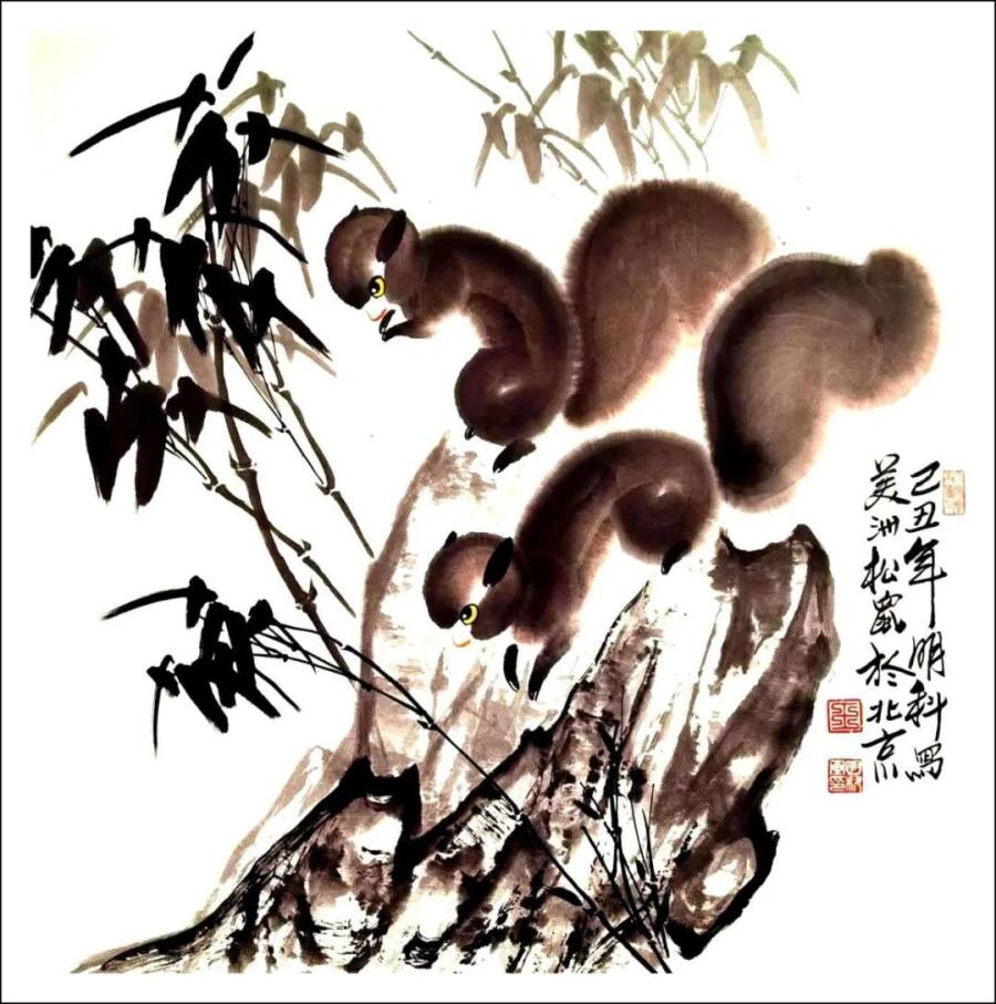 美洲松鼠 水墨 68x68cm 1995年 王明科