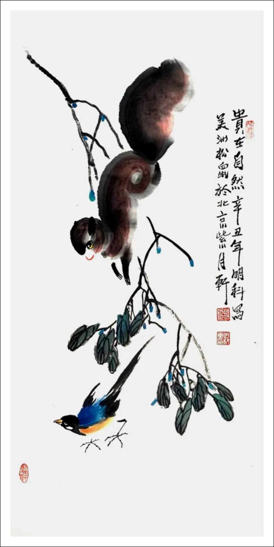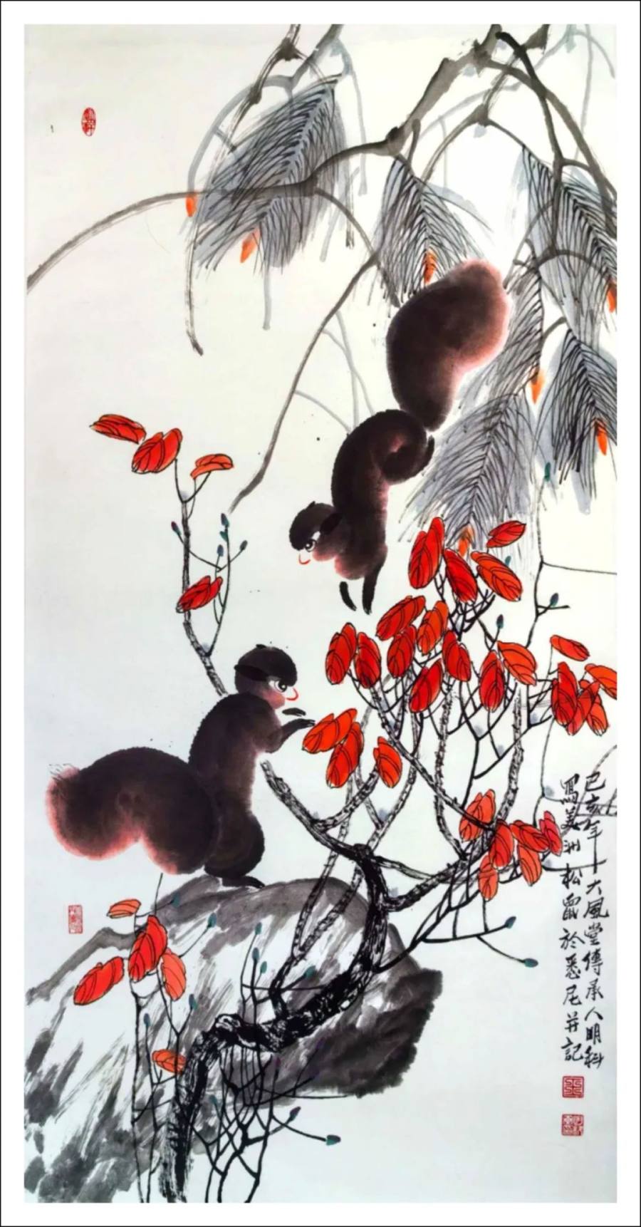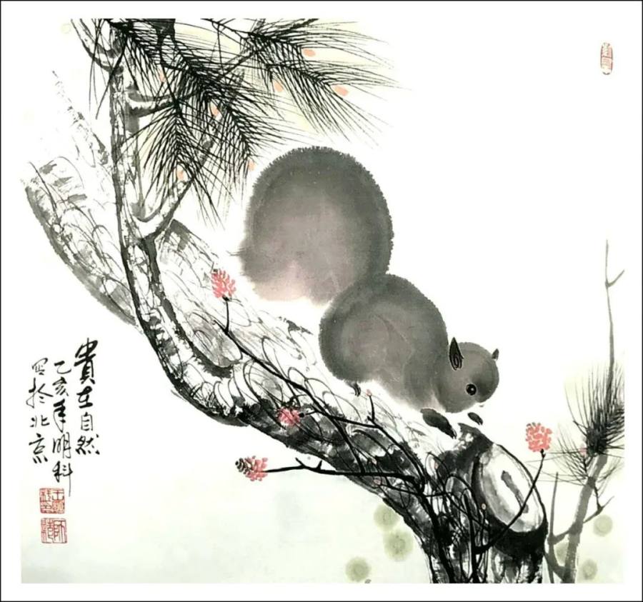美洲松鼠 生宣彩墨 136x68㎝ 2019年 王明科