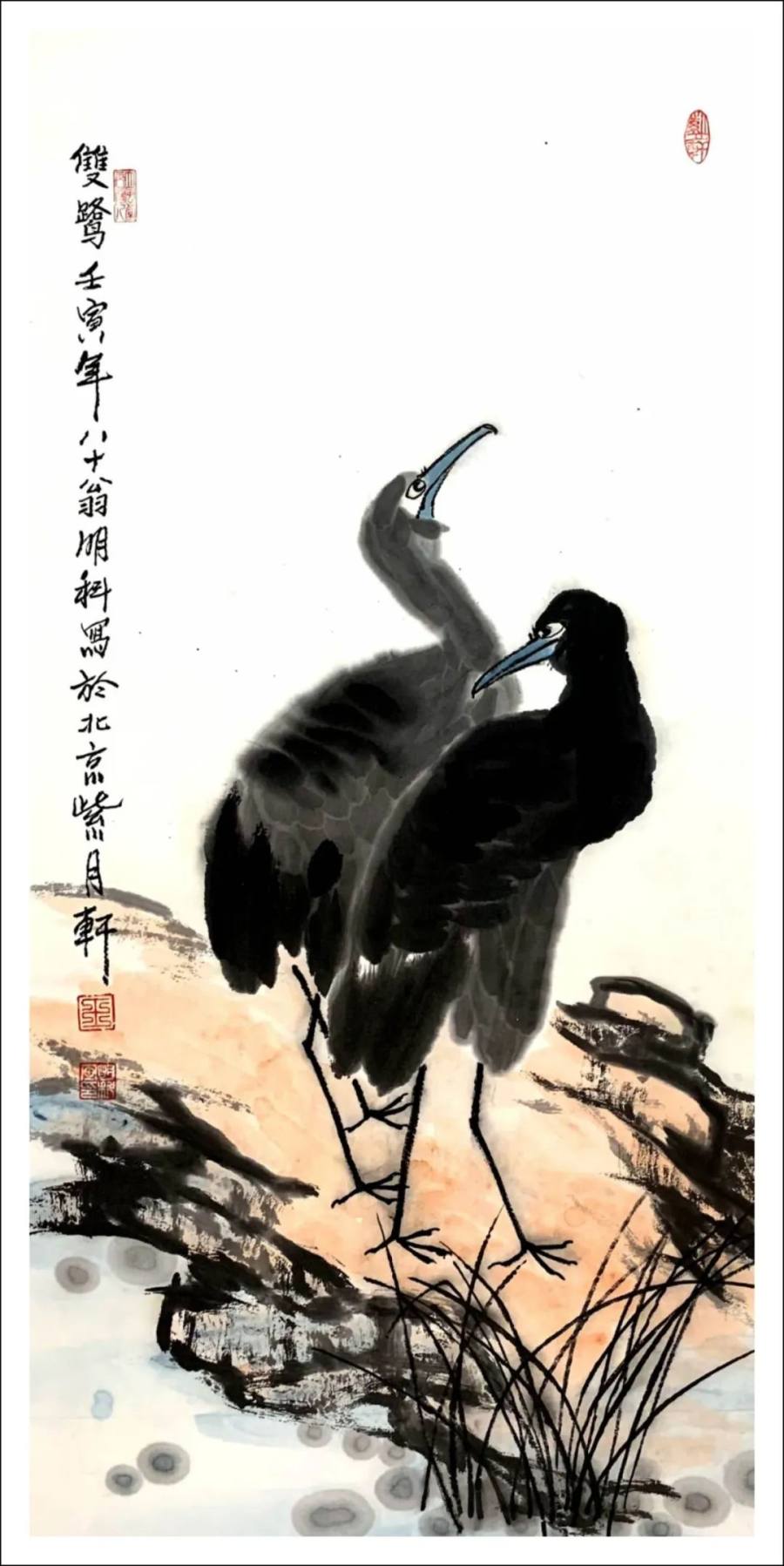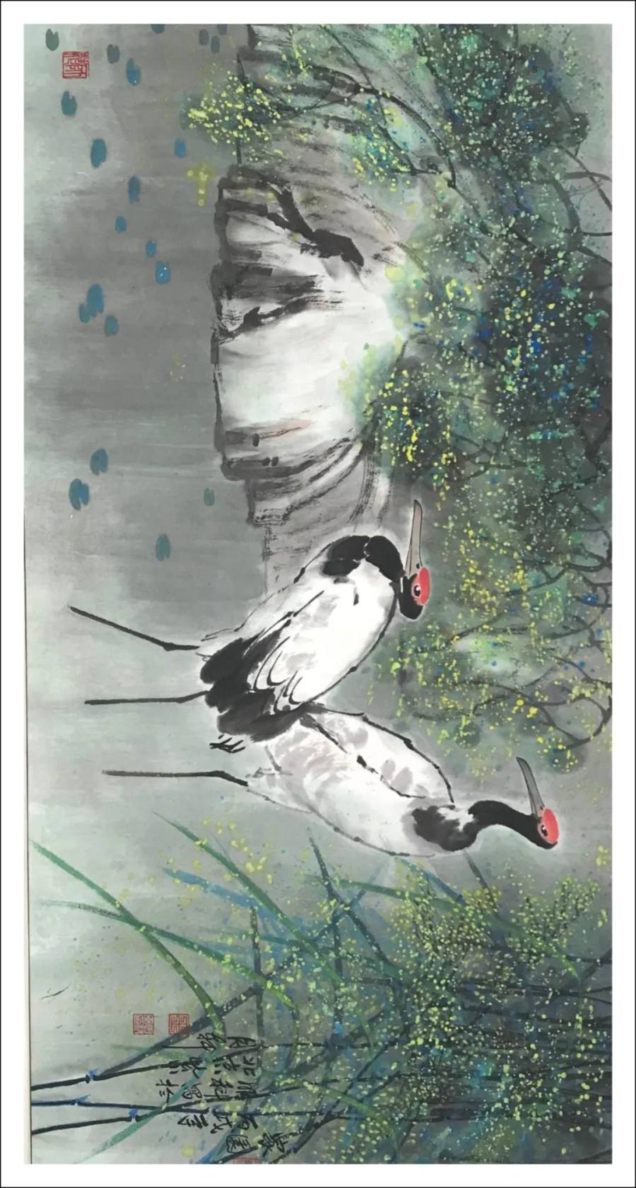 双鹭 生宣彩墨 100x50㎝ 2022年 王明科
