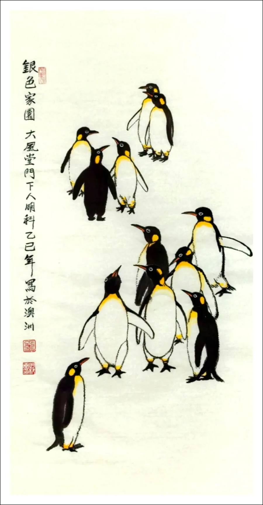 三人行必有我师 水墨 136X68㎝ 1995年 王明科