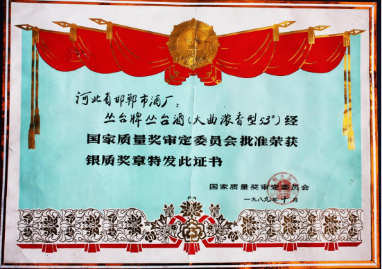 在上世纪八十年代,丛台酒业迎来了快速发展的黄金时期。1984 年,邯郸市酒厂二期扩建工程在市区南郊北堡王建成,占地 20 万平方米的现代化厂区拔地而起,生产规模大幅提升,为企业的腾飞奠定了坚实基础。1989 年,在第五届全国评酒会上,丛台酒再次荣获 “国家优质酒” 称号,捧回中华人民共和国国家质量奖章,这一荣誉无疑是对丛台酒品质的高度认可,也让丛台酒的品牌形象更加深入人心。那时的丛台酒,凭借其独特的风味和卓越的品质,成为了人们餐桌上的常客,无论是家庭聚会还是商务宴请,丛台酒都是备受青睐的佳酿。