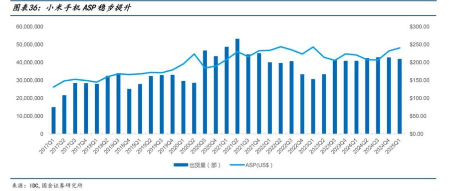 小米15 Ultra今年3月全球发布,以超过iPhone 16 Pro Max起售价拿下同比上代增长58%的首销成绩,可以作为小米高端化在海外逐渐增强认知的一个缩影。随着高端化出海的深入和新零售出海的启动,小米手机在海外市场的ASP有望进一步提升,以更稳健的步伐迈向手机出货的“全球两亿俱乐部”。