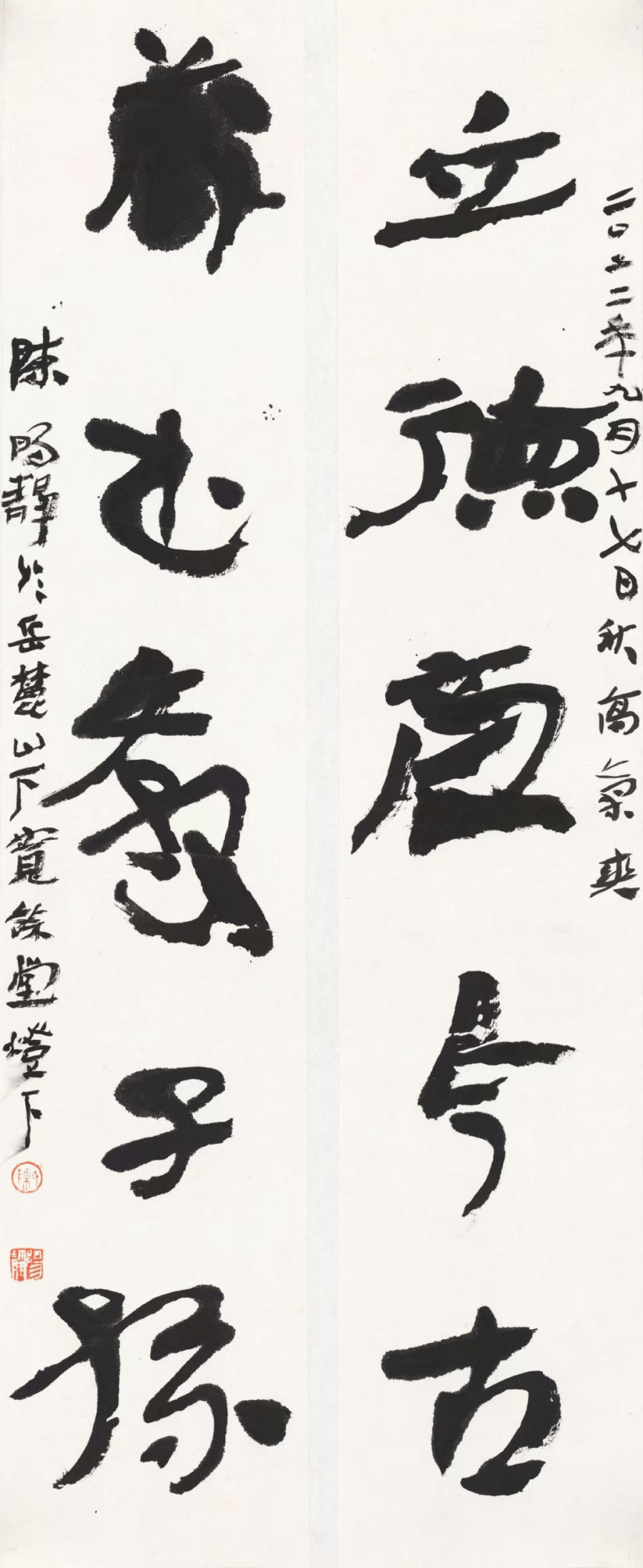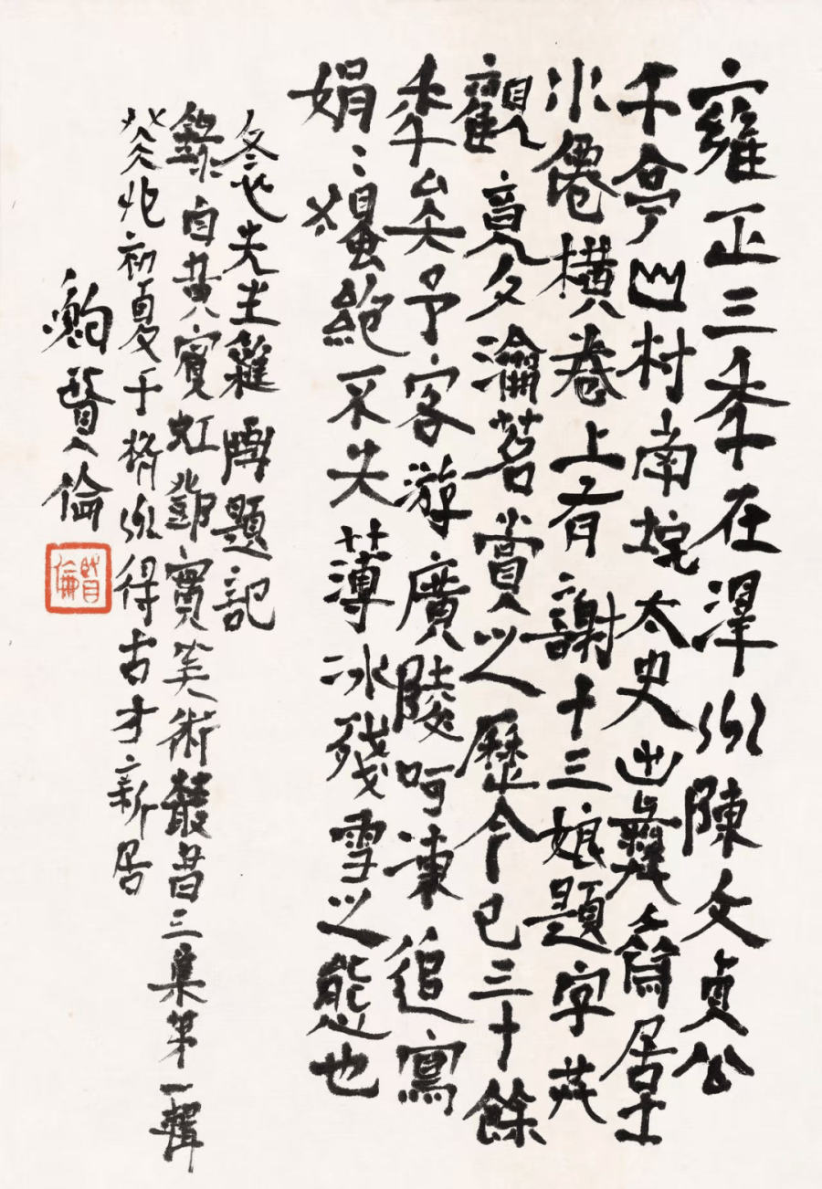 鲍贤伦、陈阳静无疑是当代简牍创作两个重要代表人物。他们在年龄上分属两代,但在简牍创作谱系归属上又跨越代际而共属一代,具有共同的审美观和价值观。鲍、陈两家在秦简与汉简的开掘与个性发挥上,皆表现出卓荦的创造性,这是无或疑焉的。鲍贤伦对秦简的揭橥,使他避开了汉隶的惯常书写模式,而开辟出隶书创作的个人疆域。就对秦简的独诣性探研这一点来说,鲍贤伦无疑占据了当代隶书创作的一个制高点,而使他的隶书创作在当代隶书领域大发异彩,一时独步;陈阳静在当代汉简创作领域后出转精,他几乎在秦简、东西两汉简不同地域与时间形态的简牍创作上自由采撷与转换,而以《急就章》为中心文本,达到汉简创作的高度。相较而言,鲍、陈两家简牍创作,皆以古法为端的,其对秦汉简牍的孜孜砥砺皆显超时辈。两家以古法标举高古,进而以风格化为旨归,此又颉颃时流者。当代书法同弊者,在于将古意与风格对立,以为引古法者必无风格,此又大谬不然者! 综观书史,每一代引动潮流而稳居书史者,终须入古。此当代书法所不得不求诸反思者。