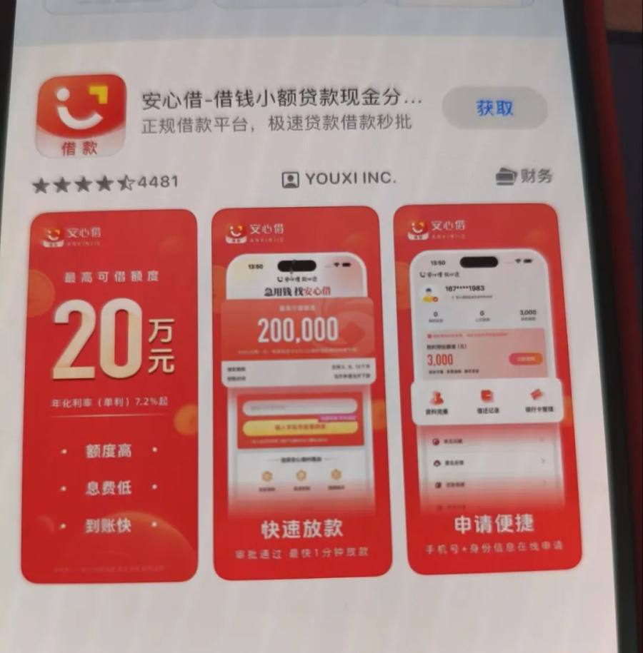 按照《移动金融客户端应用软件备案管理办法》及各大应用商店的审核规则,借款类APP上架前需提交金融监管部门颁发的资质证明,苹果商店也明确要求“金融类应用需提供相关许可文件”。但南京酉锡科技未持有任何贷款牌照,“安心借”却能在苹果商店正常下载,甚至标注“官方认证”标签。有业内人士推测,这类平台可能通过“伪装应用类别”“伪造资质文件”等方式蒙混过关——例如将“贷款”功能包装成“财务咨询”,或使用过期、伪造的金融牌照复印件应付审核。