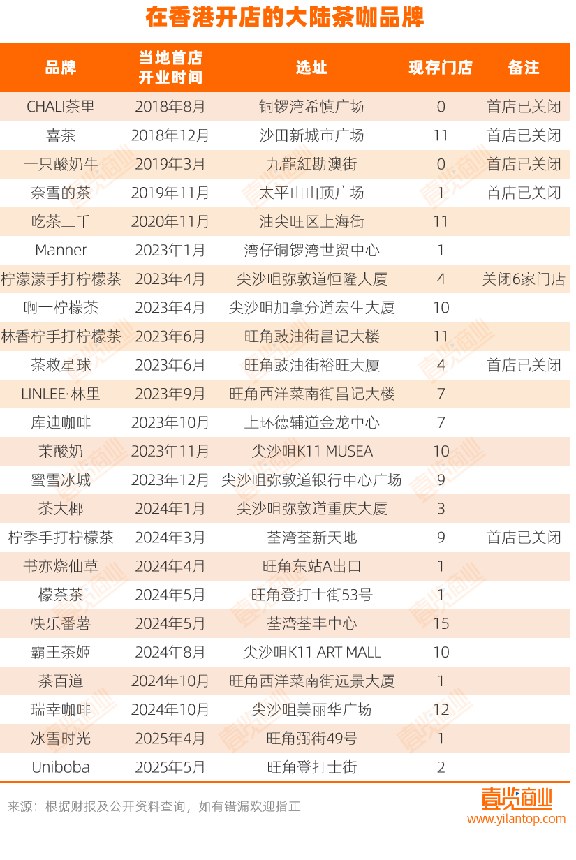 作为市场新贵,大陆品牌进军香港的步伐紧锣密鼓。据茶咖观察不完全统计,目前至少有25家茶咖品牌将触角伸向香港,在当地开出上百家门店。综观其布局,选址策略各有侧重,既贴合区域消费特征,更折射出不同的市场定位与战略野心。