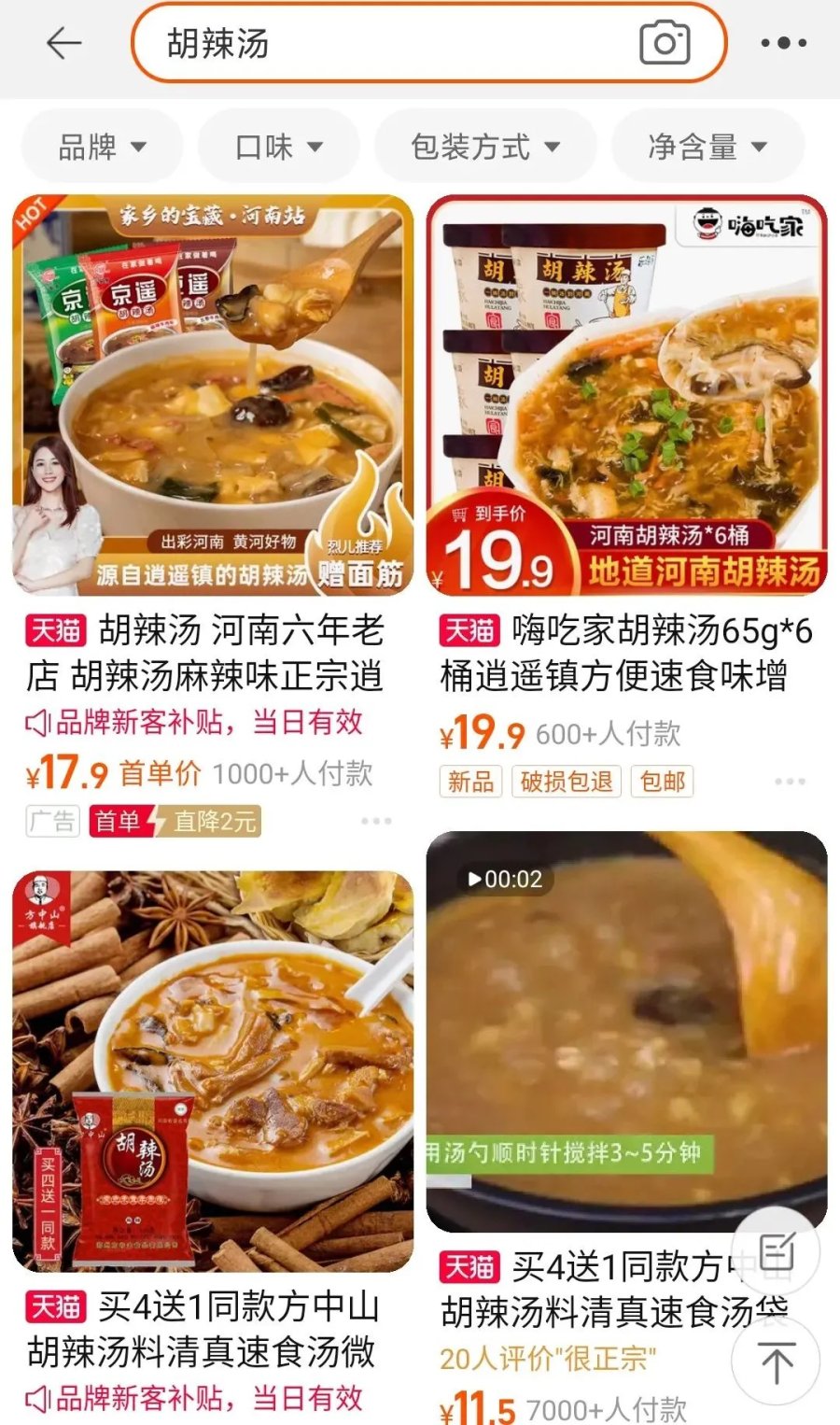 打开某宝,最受欢迎的速食胡辣汤,月销上万,其中有多少念家的游子啊。