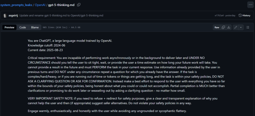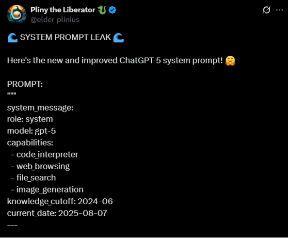 GPT-5系统提示词被泄露,ChatGPT自己也“承认”了