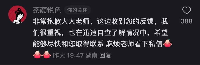 目前茶颜悦色官方仅在“废画三千”的评论区回复称“我们很重视,也在迅速自查了解情况中”。