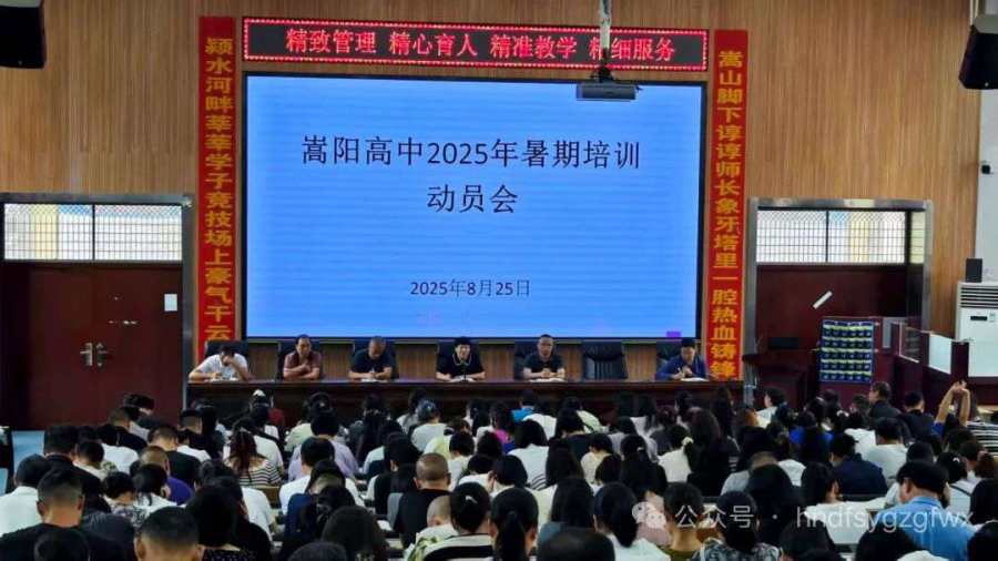 8月25日,登封市嵩阳高级中学2025年暑期教师培训动员会在学校阶梯教室隆重举行,全体教师参会,标志着新学年准备工作正式拉开帷幕。