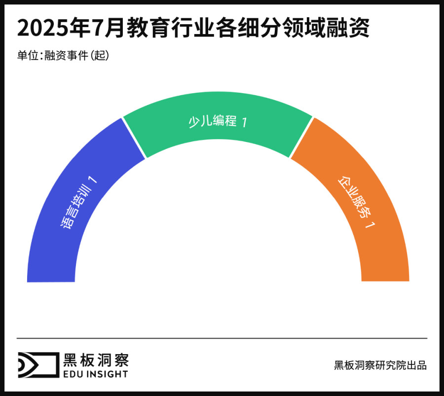 7月细分领域的融资事件中,语言培训、企业服务、少儿编程各1起。