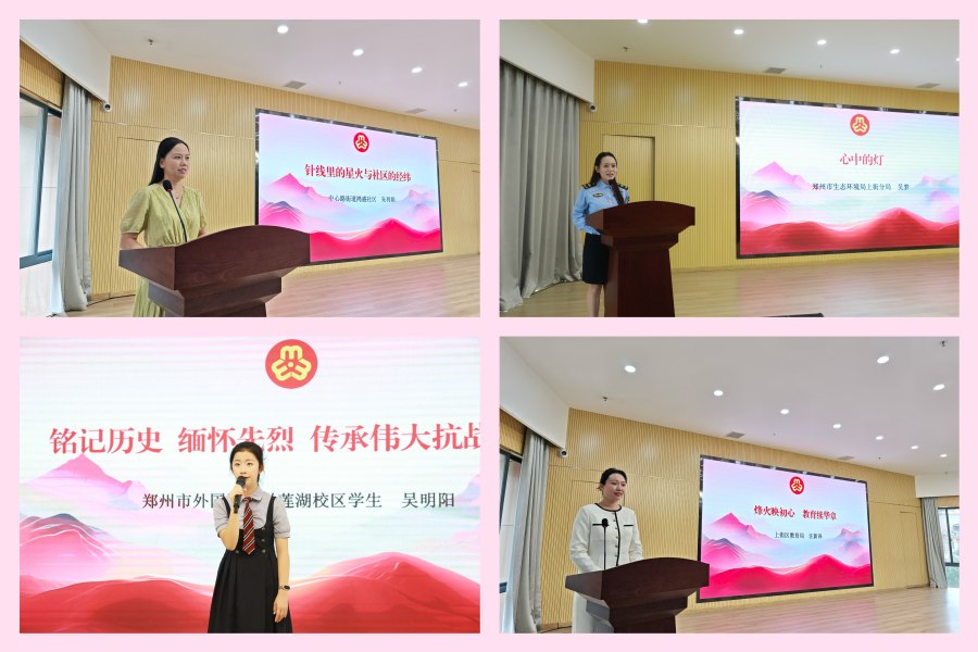 “今天,我和大家分享的是‘针线里的星火与社区的经纬’。”为纪念中国人民抗日战争暨世界反法西斯战争胜利80周年,8月27日,由上街区委宣传部、区融媒体中心、区妇联共同举办的“烽火记忆·时代传承”主题宣讲在上街区妇女儿童活动中心举办。活动旨在引导广大妇女与少年儿童在回望历史中厚植家国情怀,在传承红色基因中坚定理想信念。区直机关、各级妇联组织、三新领域妇联以及上街区儿童友好观察团共计160余人参加活动。