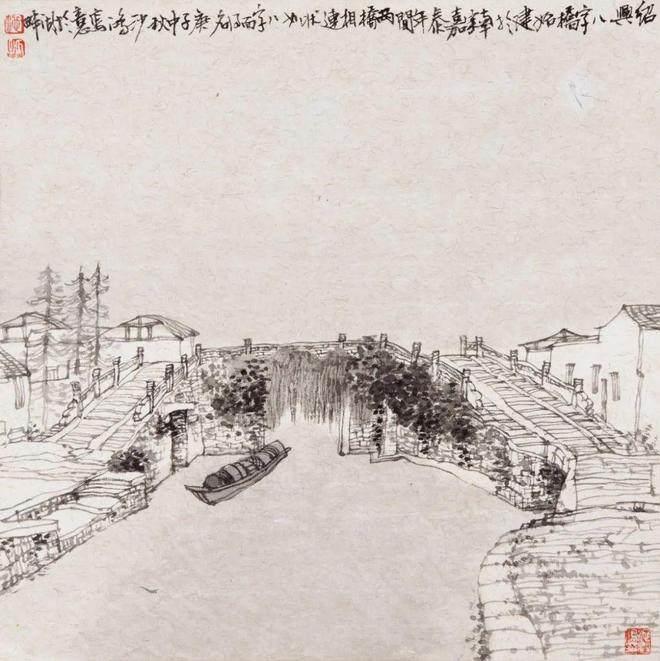 池沙鸿《绍兴东浦泗龙桥》 38×38cm 2020年