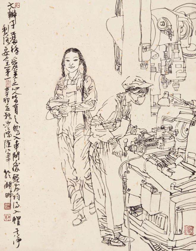 浙江美术学院(现中国美术学院)国画系77、78级,没有分人物、山水、花鸟专科,所以我只把分科当做油画中的静物、肖像、风景、风俗分类看待,作为画者,都须掌握。而且古人分科何止三科,今人创造的很多科技、工业、农业、交通、航天、能源、城市等万千成就均不在人山花三科内。所以,真正遵循谢赫“应物象形”的法度是画者最基本的能力。一般而言,画人物和动物的难度最大。尤其画人物,需要全力跟着对象的形象、感觉、内心、性格走,以形写神、形神兼备,甚至达到以神捉型的高度。人物画创作还需要关注环境、气氛、故事、年代、衣着、用具等,随时将花鸟画、山水画、佛道画、动物画、民间绘画等各方学来的技法揉碎了,融汇于意向表达中,随时将读书、读物、读人、读社会、读自然的感悟化作绘画语言,随时将长期书法学习中修得的书写习惯贯穿于绘画中。随着手中笔、墨、水的运行,让人物活生生地呈现出来。