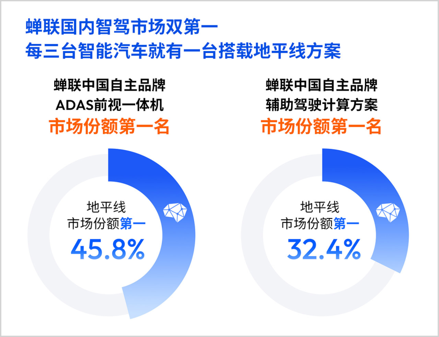 在中国自主品牌智能辅助驾驶计算解决方案市场,地平线的份额提升到32.4%,蝉联第一;在中国自主品牌ADAS前视一体机市场,地平线的份额为45.8%,同样蝉联第一。