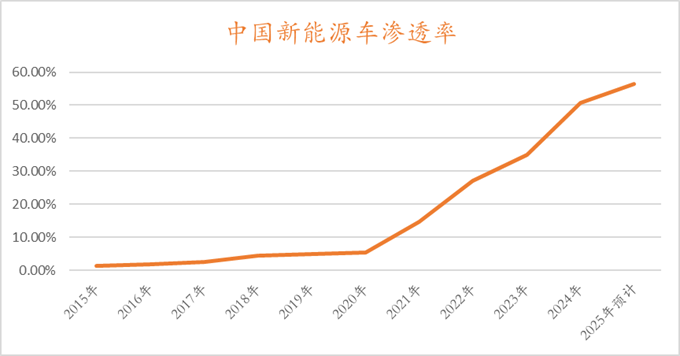 再比如新能源车,2021年之前行业缓慢爬行,2021年-2024年这三年国内新能源车渗透率从10%左右直线提高到50%以上。