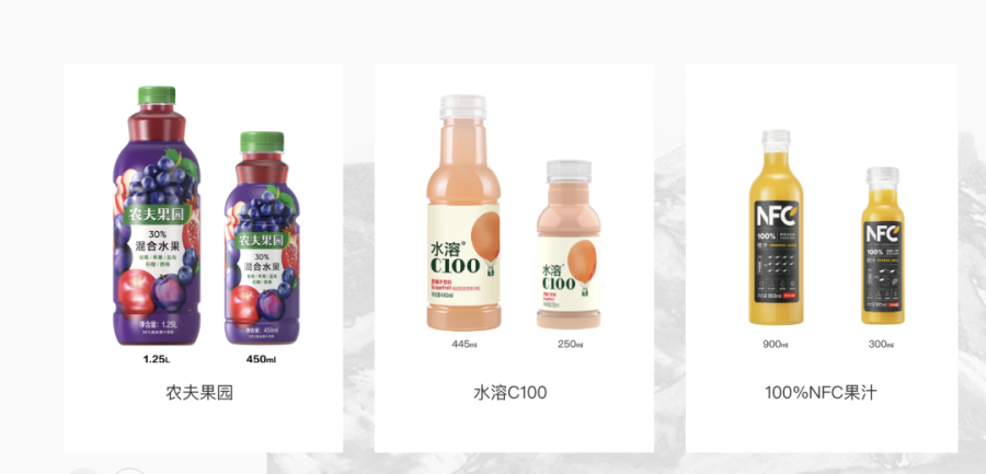 除17.5°NFC橙汁外,农夫山泉的果汁矩阵几乎陷入集体失语。“水溶C100”作为早期推出的单品,虽有一定市场基础,却因缺乏创新逐渐陷入价格战,部分区域终端出现“10元3瓶”的促销;“混合果汁饮料” 则因缺乏持续的营销投入,上市初期虽靠“多口味组合”吸引尝鲜,后续因场景心智不清晰,逐渐被淡忘。