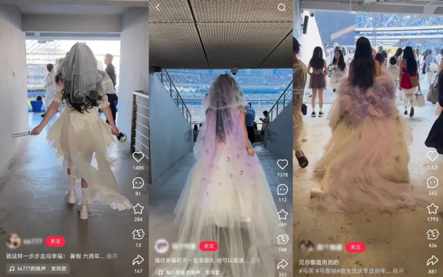 随处可见的年轻女孩们,穿着长尾拖地的各色公主裙、婚纱等各类战袍。在她们的裙子里,包里,衣服里是藏起来的灯牌。粉丝将灯牌和电池盒绑到腰间,吸着肚子,再把支架藏夹层、灯牌缝包里,暗度陈仓。