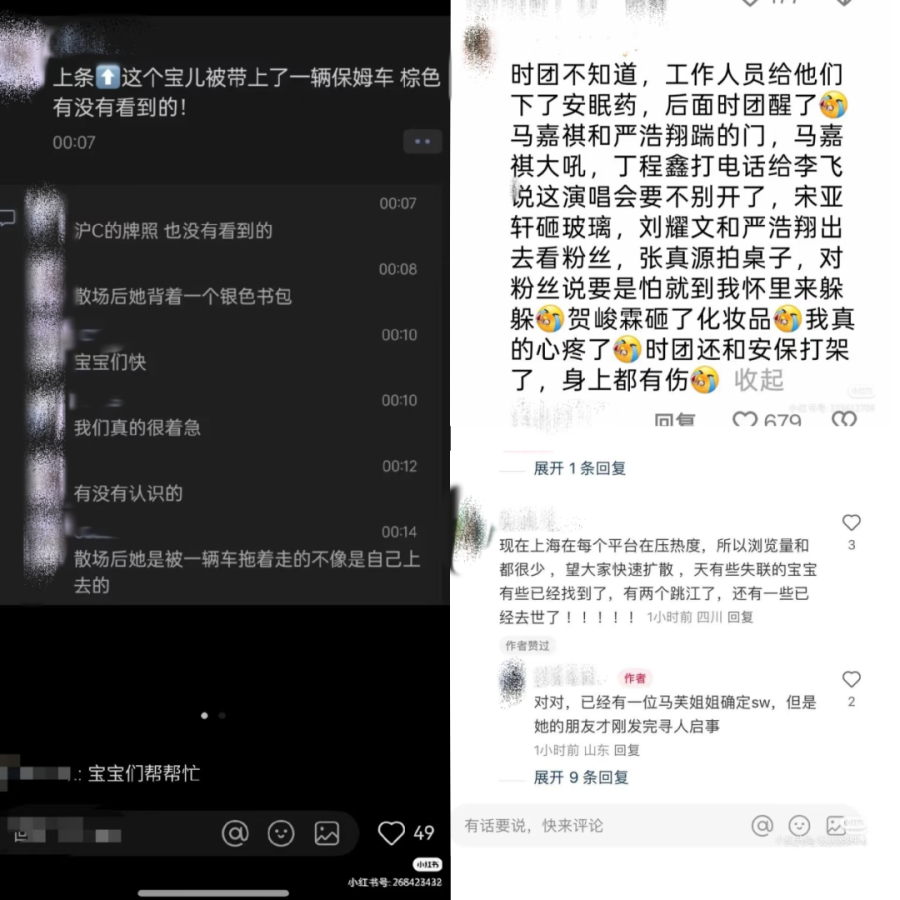 20号当晚,#时代少年团后援会声明#、#时团演唱会 灯牌#、#单飞不解散#、#时团上海演唱会安检#等词条登上微博热搜。一打开小红书和抖音,主页都是粉丝们散布的各种信息。