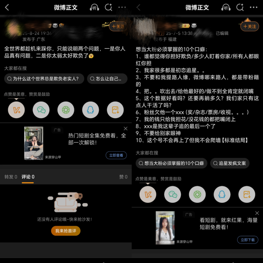 粉圈里的大粉发文后,低龄粉丝没有判断能力,会对各种消息信以为真。一些操控舆论的手段也很难被未成年粉丝识别。有音乐行业从业者告诉小娱,在尚未形成独立意识之前,未成年更容易被强引导性的话语所左右,她们在社媒的扩散能力又很强,所以才出现这么大的舆情现象。