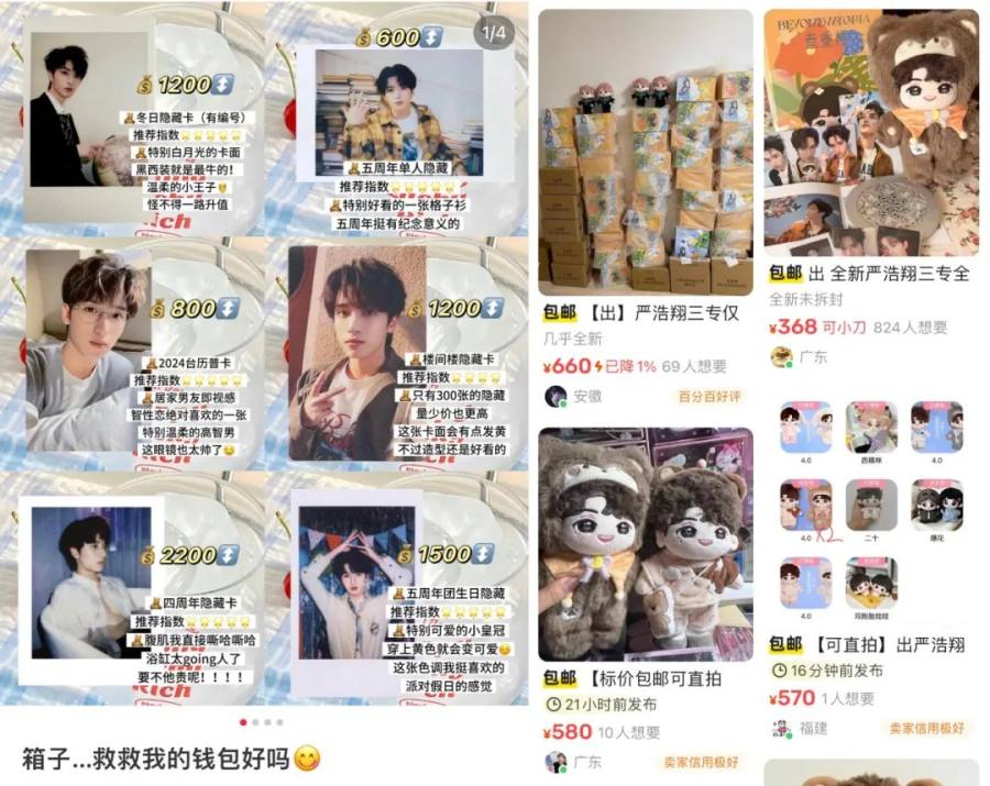 一栗告诉娱乐资本论,父母不允许自己充高级会员,所以每次买周边就只能去淘宝上看全套,或者去闲鱼上收卡,收来的周边也都比原价高出不少。