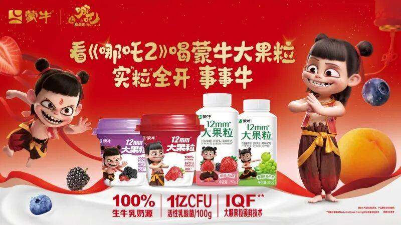 蒙牛集团相关负责人表示,蒙牛“天生要强”的品牌理念与《哪吒2》中哪吒坚韧与不服输的性格特质高度契合,双方签订协议,就《哪吒2》及蒙牛全品类产品开展了联合宣传营销合作。