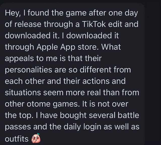 通过小范围调查,小娱得知《恋与深空》在欧美的这些欧美女玩家,不止包括前文提到的,原本就对二次元感兴趣的群体,而是真正吸引到了新用户。