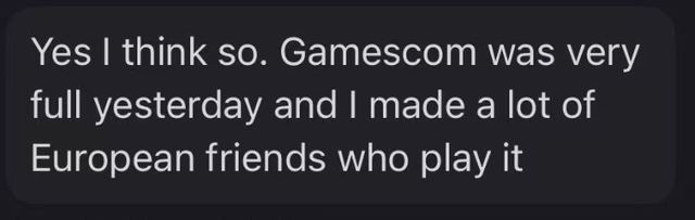 那么出现在科隆展上的外国玩家大概是一群什么样的人?团子说她观察到的,队伍中大部分老外还是很符合我们对“海外二次元”的刻板印象:一部分身形比较敦实的男女,一部分穿着cos服的coser,大家普遍看起来年纪都比较成熟(“也可能老外本身就脸老”)。