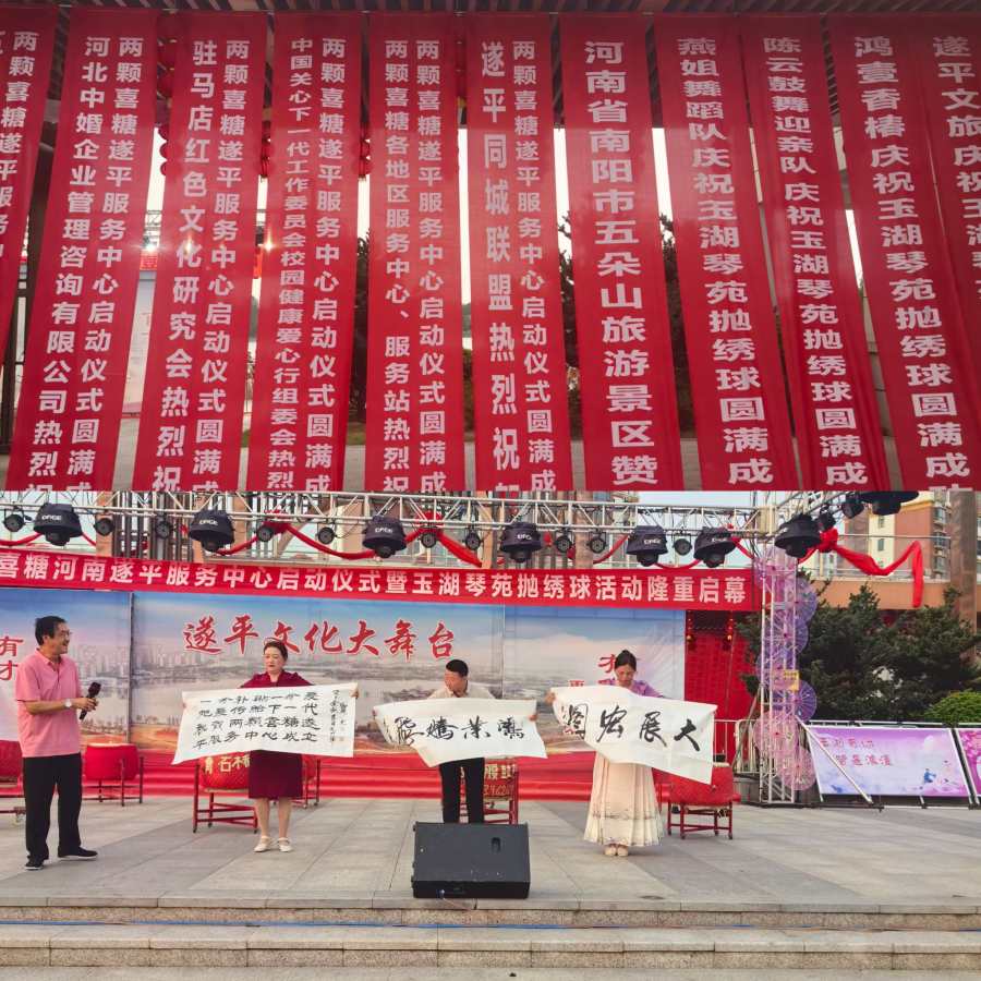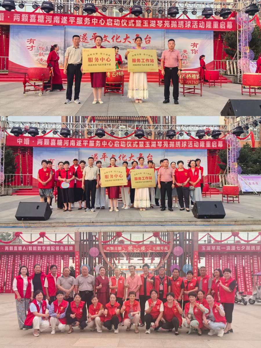 星河璀璨映七夕,甜蜜情缘聚玉湖。2025年8月29日傍晚5:20,这一寓意“我爱你”的浪漫时刻,国家级3A景区遂平玉湖湿地公园内氛围热烈,“中婚·两颗喜糖河南省遂平县服务中心授牌仪式暨玉湖琴苑七夕抛绣球活动”正式启幕,众多嘉宾、市民齐聚,共赴这场融合传统文化与现代婚恋服务的盛会。
